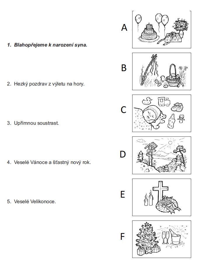 1.Spojte text a obrázek. Jeden obrázek je navíc.