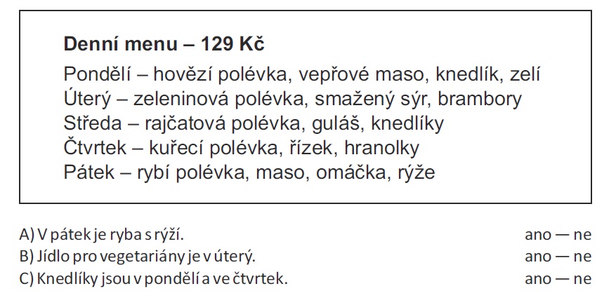 2. Přečtěte si texty a rozhodněte, která informace je pravdivá (ano) a která nepravdivá (ne).