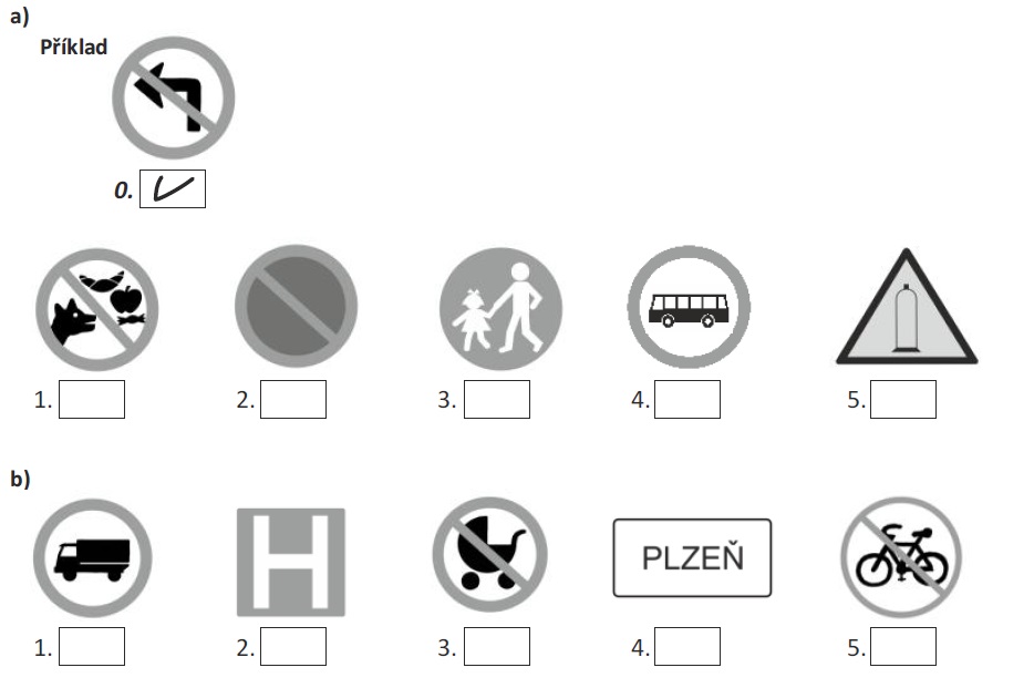 3. Vyberte značky, které informují o zákazu. Úkol číslo 0 je příklad.