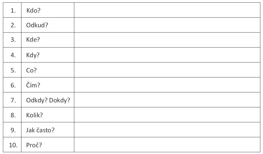 Váš nový český kamarád mluví o své rodině a o práci. Co chcete ještě vědět? Ptejte se a použijte tato tázací slova: