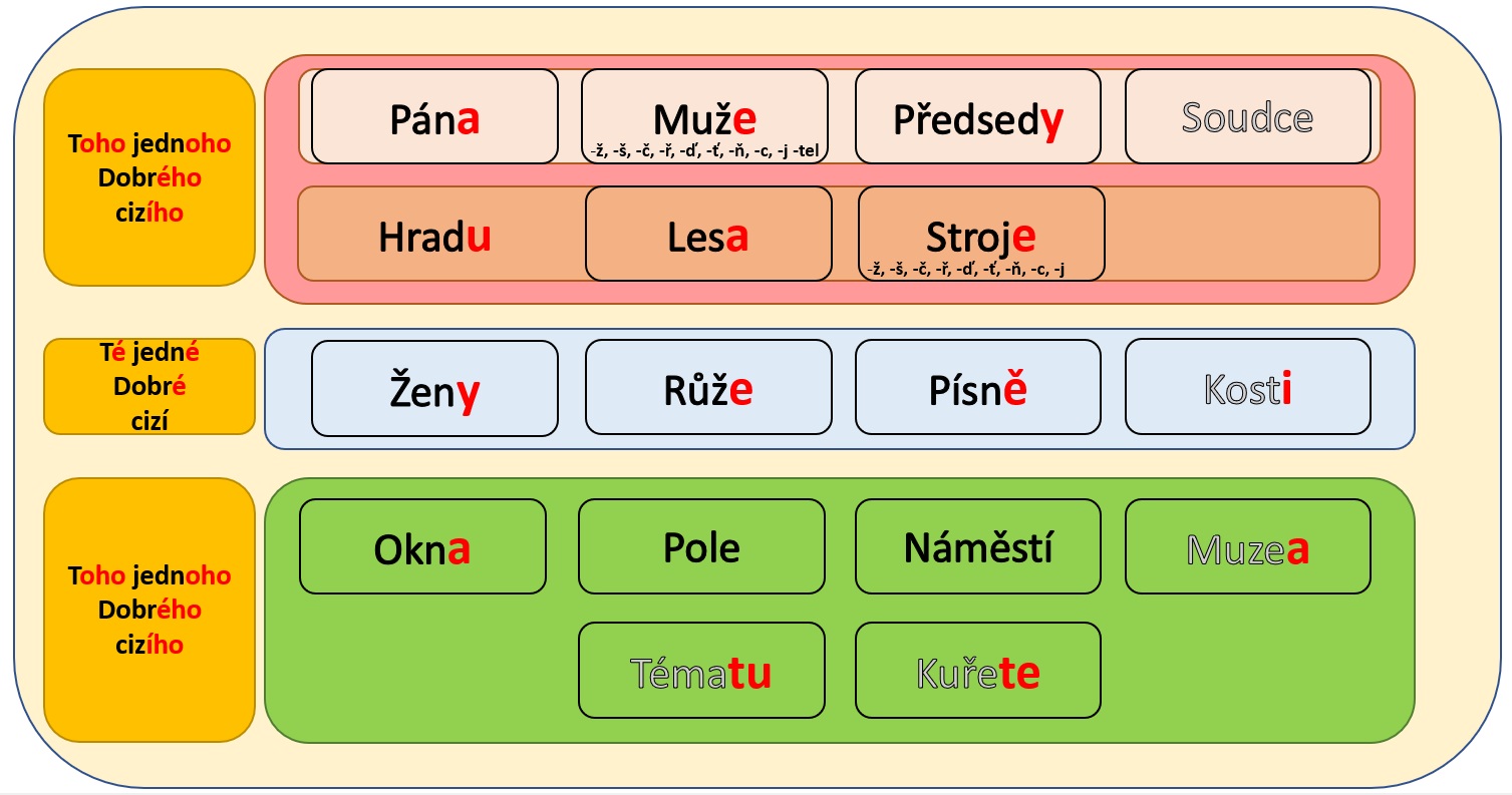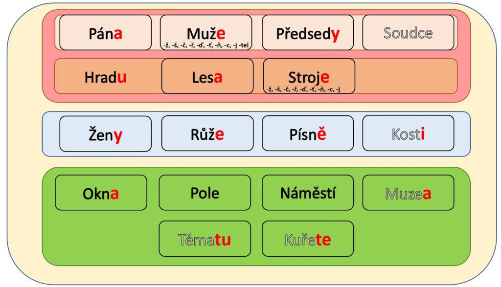 В одушевлённых существительных мужского рода (кроме типа předseda) окончания совпадают с Винительным падежом.