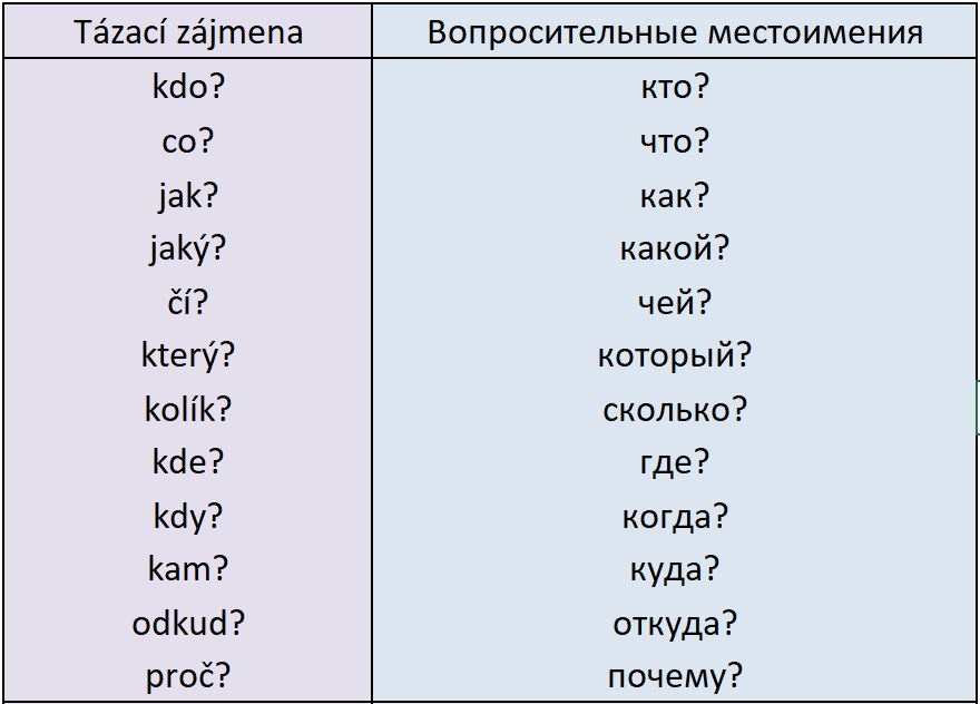 Еще предлагаем запоминть весьма полезные вопросительные местоимения, из которых в дальнейшем будем составлять различные неопределенные и отрицательные местоимения.