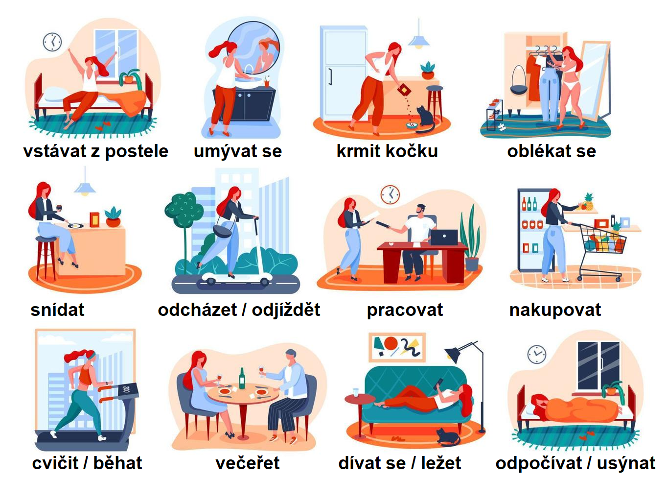 Jak můj den? Docela brzo — už v sedm hodin, protože nerad . , , potom dlouho . Škola není daleko, jdu tam pěšky.