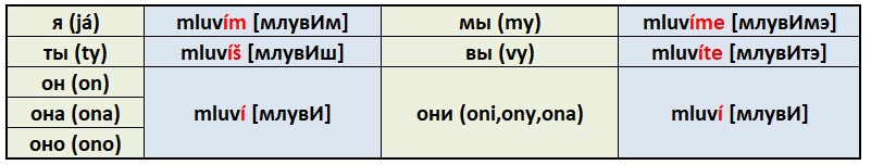 (типичный представитель глаголы на -it - глагол mluvit - говорить, разговаривать):