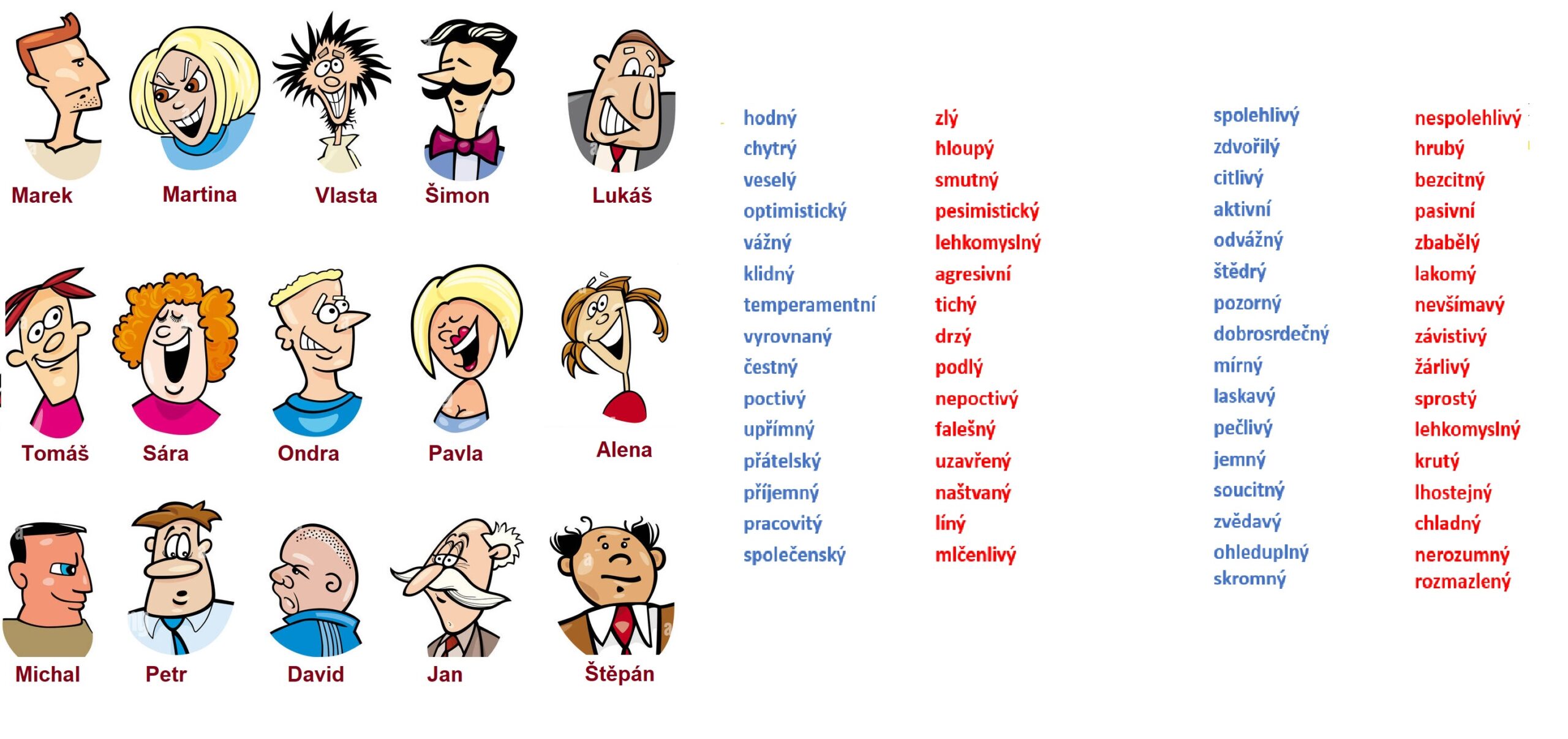 Popište postavy. Tipněte si, jací jsou, jakou mají povahu a co mají rádi: