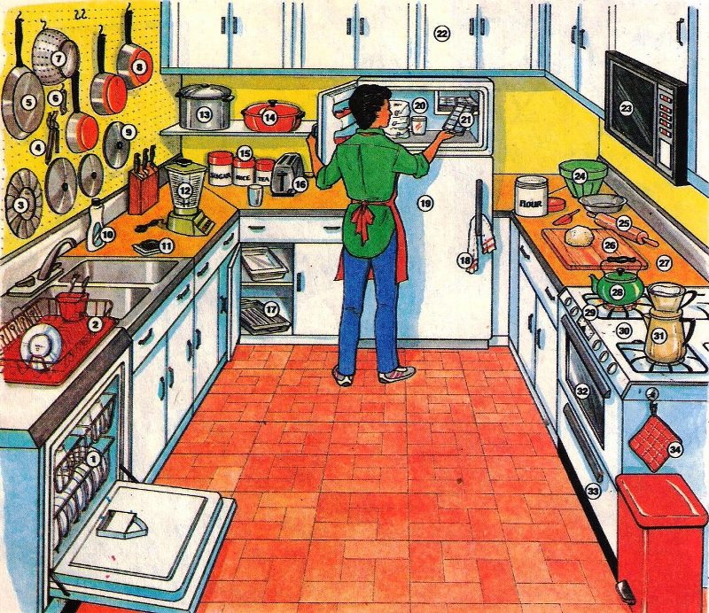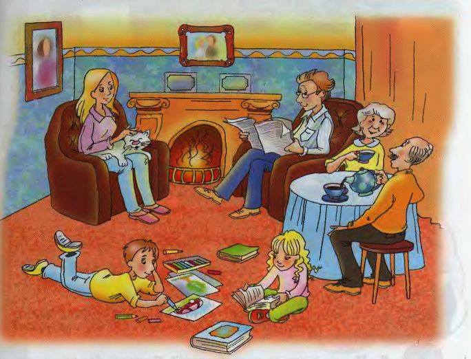 И в заключение опишем следующие картинки. Назовём всё, что знаем - где что лежит, стоит, висит и т.д.