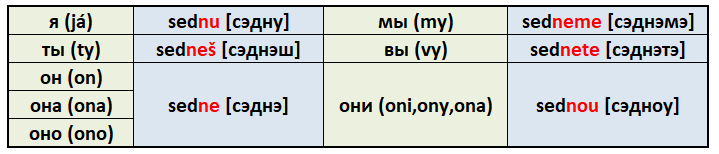 Já si sednu na ten gaučЯ сяду на тот диван |