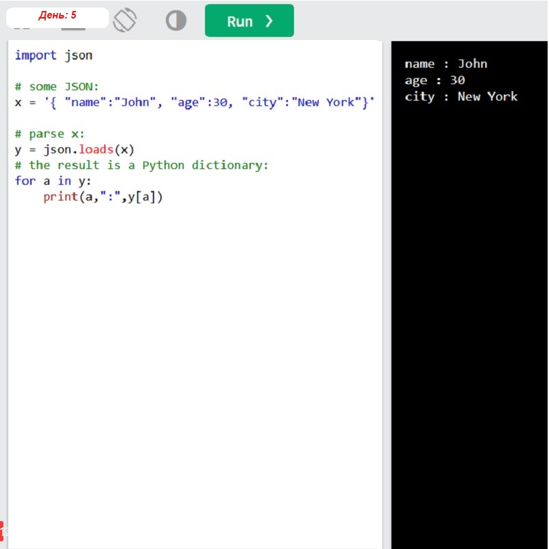 lambda функция, массивы, классы, __init__, __str__, del, pass, наследования, super(), итераторы, __iter__, __next__ – встроенные классы для создания итератора, полиморфизм, масштаб – ключевые слова global / nonlocal (видимость не глобальная а сдвигаемая наверх во вложенности), модули, подключение модулей. Модуль datetime, методы ceil/floor, json, .loads/dumps, json