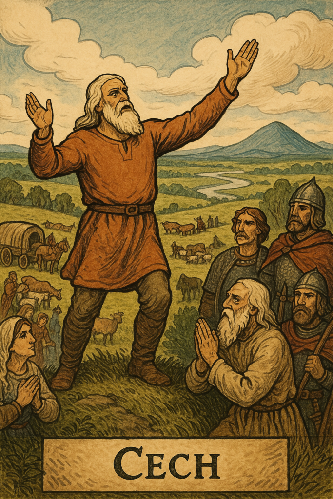 Z mateřských končin slovanských přišel sem lid, naši předkové, se svým vůdcem Čechem.