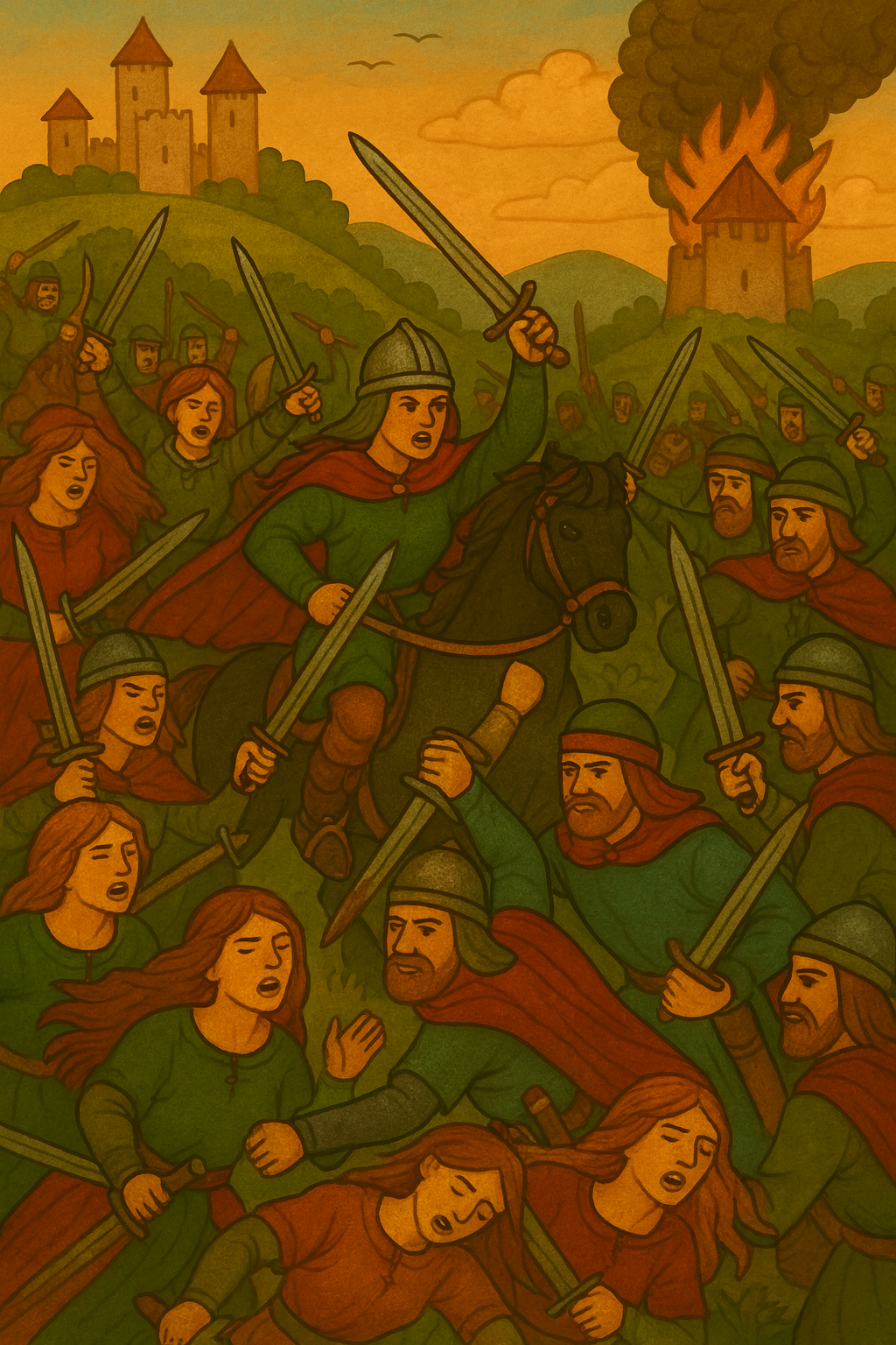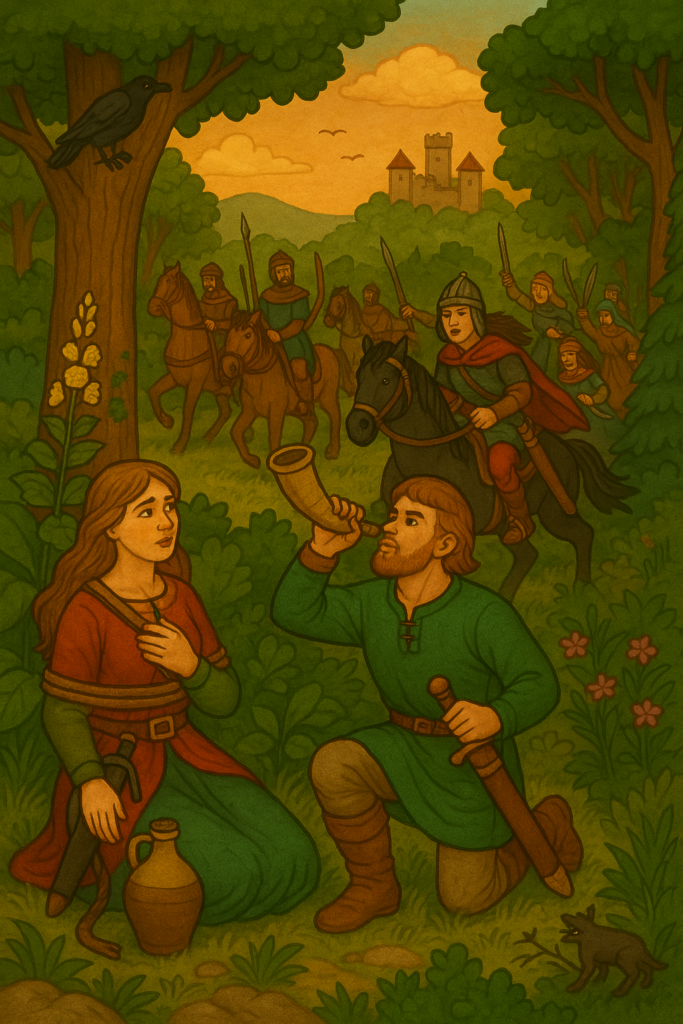 Zlá byla cesta hlubokými hvozdy, zlá jejich chůze luhy a bažinami, plnými rákosí, ostřice, rozlehlých, mechových trsů a různých křovin. Z večera zažehovali ohně a topili do úsvitu, aby zář, padajíc do tmy lesní, plašila úskočné, líté šelmy.