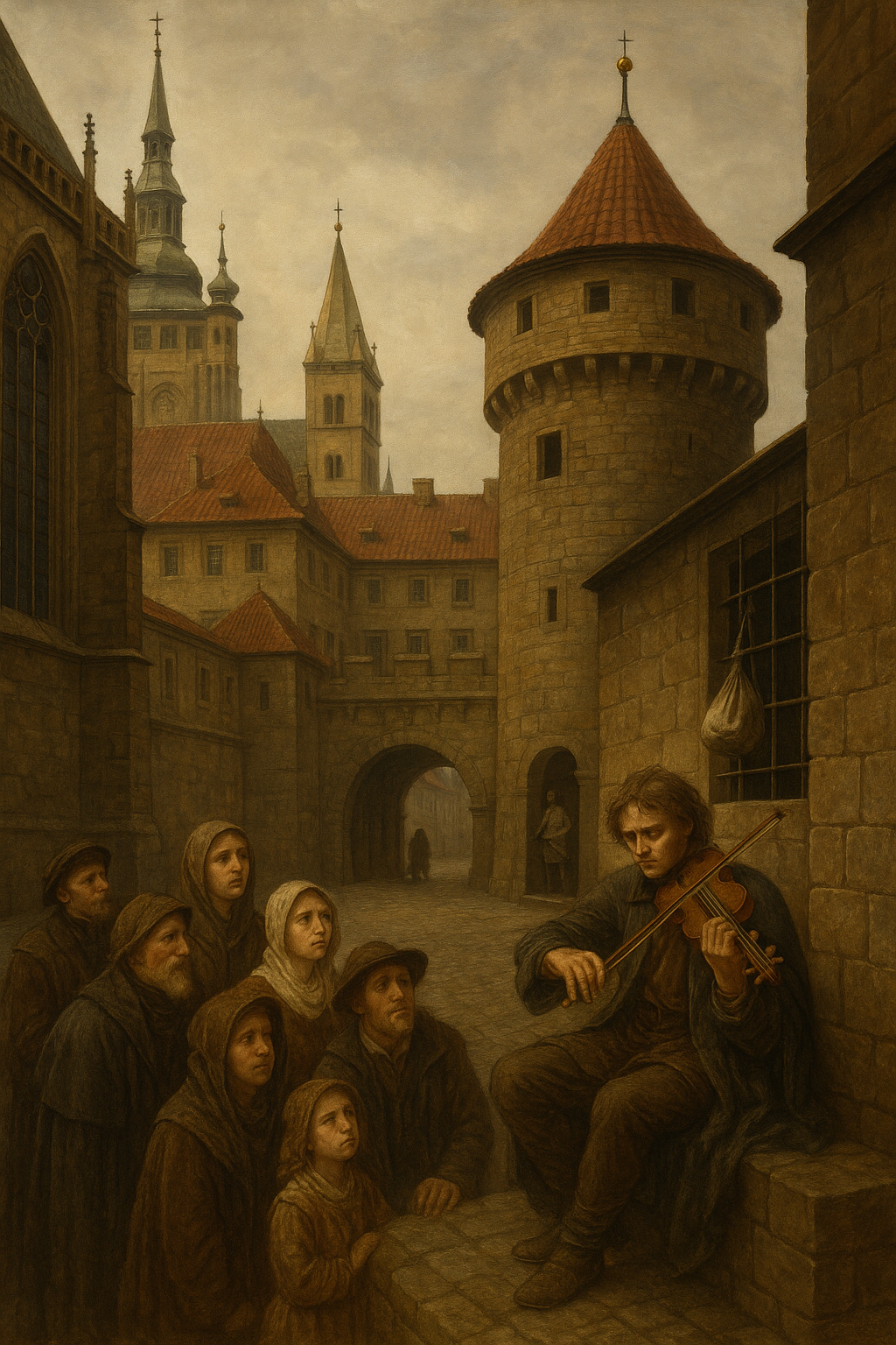 „A potom?“ ptal se Karel IV., když slepý mládenec přestal.