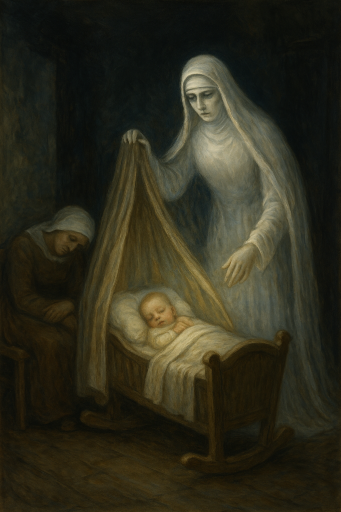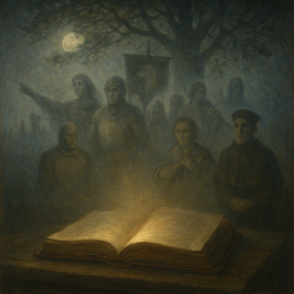 I šla řeč dál o divných zjeveních a viděních za hustých nocí, na blatech, v širém poli i lesní pustině, o zmekách ohnivě se nesoucích tmavou nocí, o zlé Jedubábě střehoucí živou a mrtvou vodu, o bílých sudičkách zjevujících se u kolébky novorozených, o čarodějných vědmách, o zlých a dobrých znameních, a se svatou hrůzou naslouchali všichni tajemným věštbám rodu a plemene.