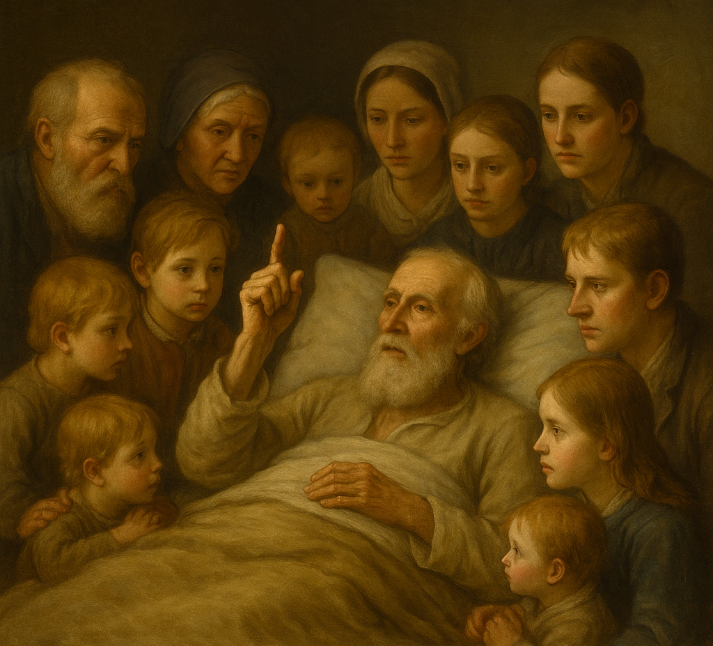 A tu stařec se všemi se žehnaje pravil: „Synové, dcery mé a děti všechny a přátelé, již s vámi se na věky loučím, již se na věčnost ubírám. Dost jsem si na tom světě pobyl, sto patnácte let mi Pán Bůh dopřál. A byla za ten věk mnohá léta dobrá, ourodná, za našeho českého krále Vladislava, a zachovali jsme hojně grošů a zmrzlíků, i tolarů i krejcarů s korunami.