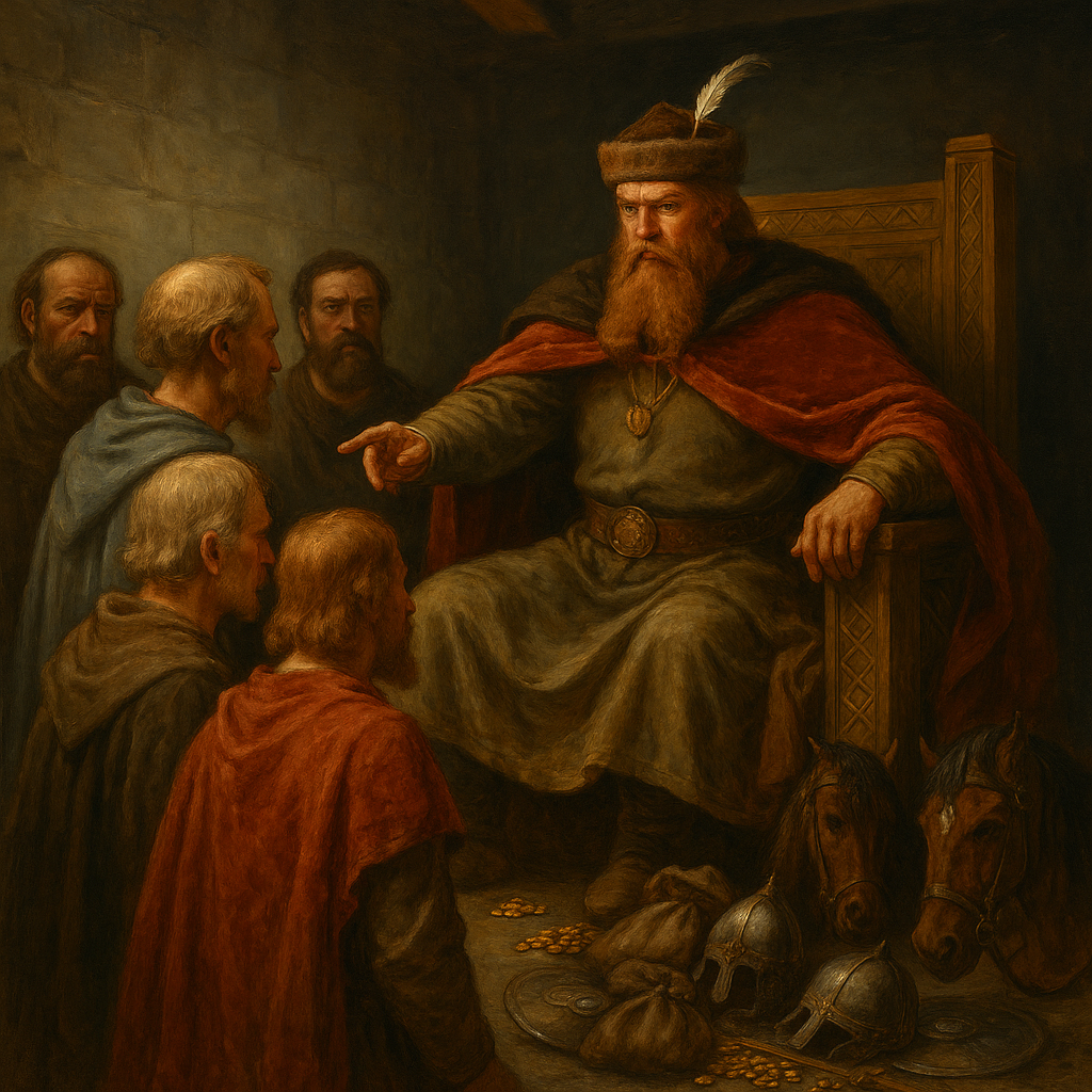 „Pozdraven buď, ctný mládenče!“ oslovil ho panovník.