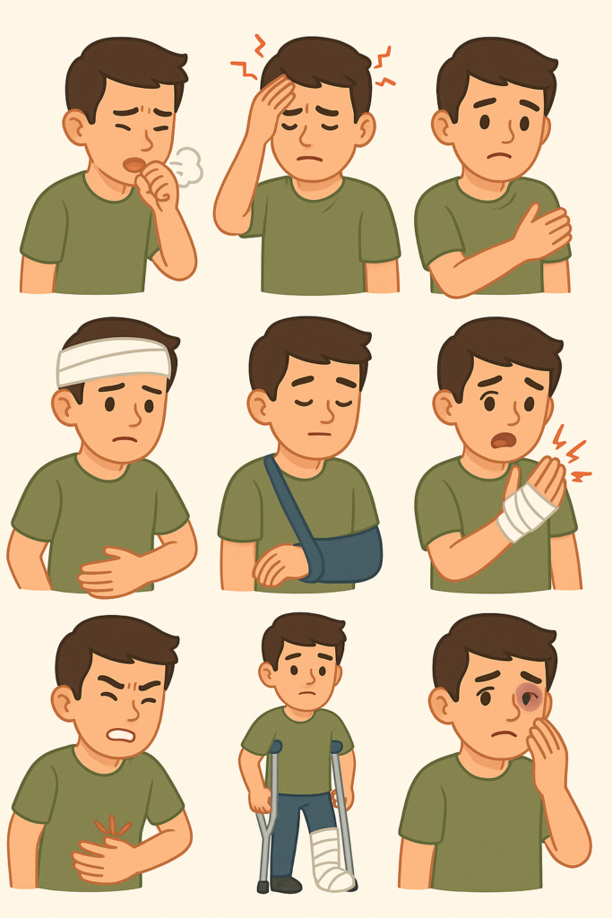 V lékárničce vždy musí být obvaz, mast, obklad, náplast, škrtidlo, prostředek pro dezinfekci a pár stříkaček
