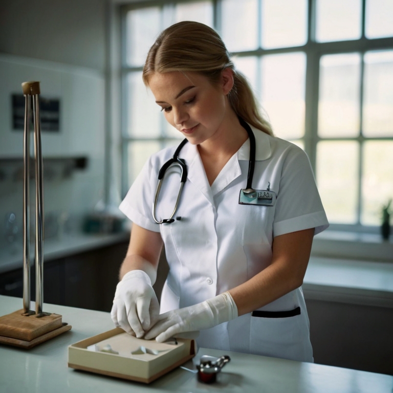 Zdravotní sestra píchá injekci, měří tlak, rozdává léky, vyplňuje zdravotní karty pacientů